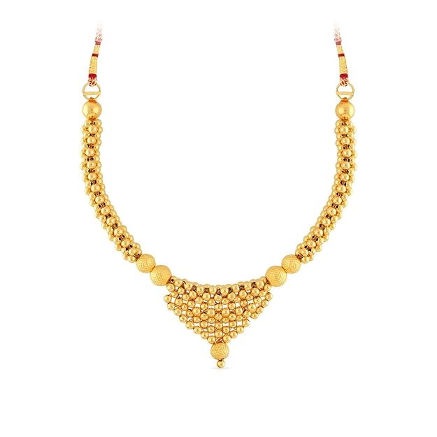 Malabar Gold Necklace for Women 22k | Pure Gold Traditional Maharashtrian Thushi necklace 22kt(916) BIS Hallmark Gold