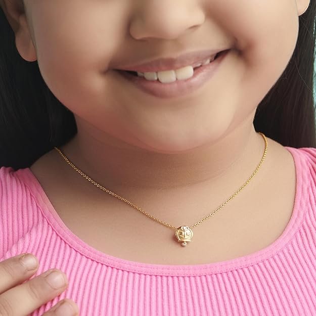 Delight your little one with this charming 14 KT yellow gold Doraemon pendant from CaratLane’s beloved kids’ jewellery collection. Crafted with care in lightweight and comfortable gold, the pendant features the iconic Doraemon character design — perfect for everyday wear or as a special gift for birthdays, festivals, and memorable occasions. Designed especially for kids, this playful yet precious piece blends the timeless elegance of gold with the fun appeal of a familiar cartoon‑favorite, making it a keepsake your child will treasure.