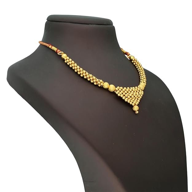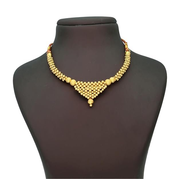 Traditional Maharashtrian Thushi design with signature woven gold beads