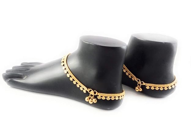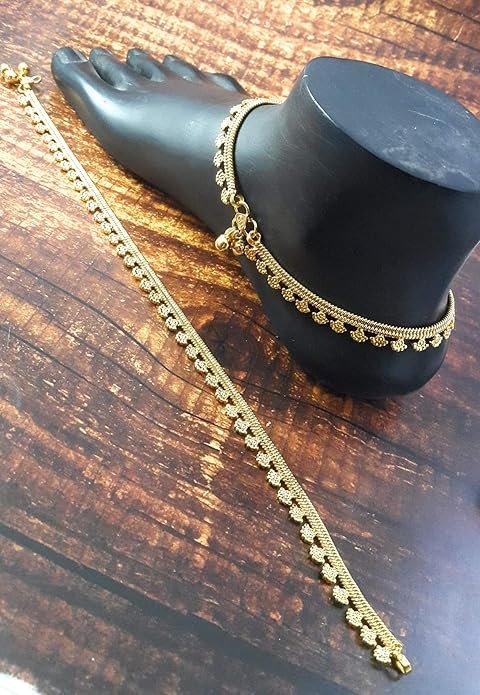 Crafted with a bright yellow gold finish, the anklets offer a stylish shine while remaining lightweight and comfortable for daily or festive wear. Their slim design makes them perfect for pairing with ethnic outfits like sarees, salwar suits, and lehengas, as well as fusion styles.
