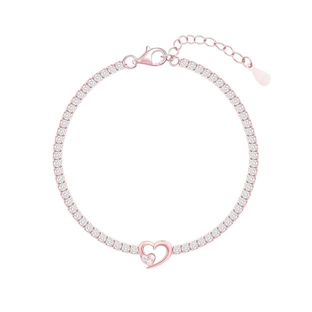 Twin Hearts Tennis Bracelet for Women | 925 Silver Bracelet with CZ Line and Dual-Heart Centre | Adjustable Elegant Silver Bracelet Design | for Girls & Women