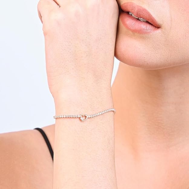 Elevate your elegance with the Twin Hearts Tennis Bracelet for Women, a stunning piece crafted from 925 sterling silver. Featuring a dazzling CZ line and a charming dual-heart centerpiece, this bracelet embodies timeless sophistication. The adjustable design ensures a perfect fit for any wrist, making it an ideal accessory for daily wear or special occasions. Its delicate yet striking look makes it a perfect gift for girls, women, or anyone who loves elegant silver jewelry.